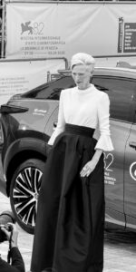 Look impeccabile, sguardo magnetico e una presenza che lascia il segno: Tilda Swinton ha calcato il red carpet della 82ª Mostra Internazionale d’Arte Cinematografica di Venezia per presentare “Broken English”, il nuovo documentario che la vede protagonista e narratrice, diretto da Jane Pollard e Iain Forsyth.